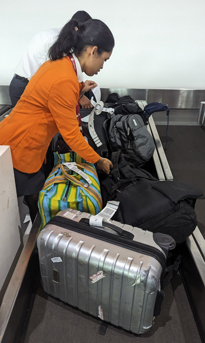 כשמילאתי באינטרנט את הטפסים לויזה למדינה, מילאתי על שמי, בטופס היה אפשרות להכניס גם את הילדים (הם לא משלמים ויזה), אז הכנסתי את כולם, ואח"כ מילאתי את הפרטים של אפרת בטופס אחר. פקיד ההגירה אמר בקול רם ודי מפחיד כי ישנה בעיה עם הויזה של הילדים מכיוון ש…בלה בלה בלה… הוא לקח אותנו לחדר צדדי כשכל פעם מסנן את המשפט: "אל תדאג, אני אעזור לך, אבל אתה תעזור לי". הוא סיפר שללא עזרתו היינו יכולים להתייבש שם בשדה 5-6 שעות בכיף… טוב, המתנו כמה דקות, אח"כ הוא סיפר לי שהוא סידר לנו את הויזות ורצה את "התמורה" נקרא לזה כך. רק מה ? הוא לא ידע שהוא נפל כאן על מישהו שביקר כבר 4 פעמים בהודו, והדאווינים שהוא עושה, לא בדיוק מרשימים אותי. ההבדל הוא שעד כה מי שעשה עליי דאווינים אלו הם רוכלים פשוטים מהרחוב, לא פקיד ממשלתי. איזו התחלה מאכזבת קיבלנו מסרי-לנקה. כל כך חבל. הוא שיחק יפה את המהלך הראשון, ועכשיו היה תורי לשחק, חיפשתי את אפרת (שבאמת נעלמה), אמרתי לו כי הכסף עליה, בסופו של דבר מצאתי אותה, הוא חשב לתקתק אותנו מהר, לקבל את הבקשיש שלו מהר, לי היתה מוטיבציה אחרת – למרוח את הזמן (בזמן הזה שהוא לא סיים איתי, הוא לא יכול להתחיל לעבוד מול האחרים), והוא כבר נכנס ללחץ של זמן, כשפגש אותי שוב, הוא זירז אותנו לצאת מדלפקי ביקורת הדרכונים, זה היה הזמן שלי להגיד לו בקול רם (כדי שאחרים ישמעו) – כי אין עליי כסף לשלם לו ואני אשמח להגיע לכספומט, למשוך מזומנים ורק אז לשלם לו. בשלב מסויים הפקיד ראה כי העסקה מתחרבשת לו והודיע לנו כי הוא לא מבקש מאיתנו כלום, רק שנמהר לצאת מכאן, לאחר מכן הוא ביקש שנקנה לו כמה שוקולדים בדיוטי פרי, את זה ניתן לשלם גם בכרטיס אשראי, סבבה, נכנסנו לדיטוי פרי ולא חזרנו אחורה. תודה רבה אדוני, שלום ולא להתראות. הפלנרים וסרי-לנקה התחילו ברגל שמאל. הגענו למסוע לאסוף את הכבודה שלנו, מכיוון שהתעכבנו יתר על המידה בדלפקי ההגירה, עובדי המקום הוציאו לנו כבר את התיקים, סידרו לנו אותם יפה על הטרולי, רק שנבוא וניקח. זה היה יפה ומהיר.