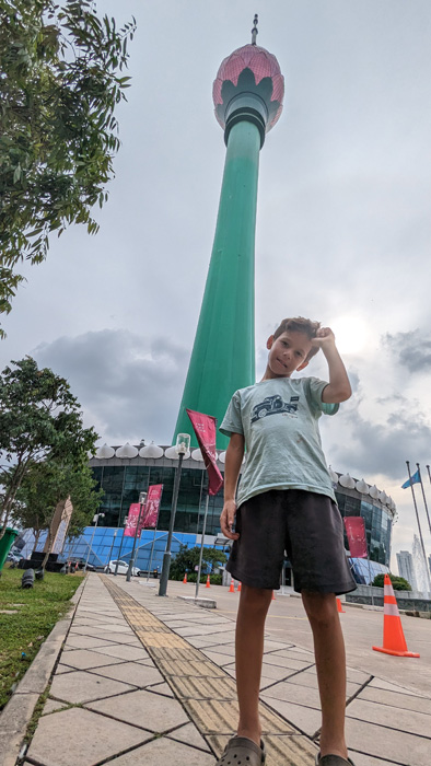 ביציאה מהמקדש, נעלנו את סנדלינו לאחר שהשארנו אותן בכניסה, לרגע לא ראיתי את נעלי הקרוקס שלי ונכנסנו ללחץ (כבר יש לנו טראומה מכך), לבסוף נמצאו. הנהג שלנו הציע לנו להתקדם לכיוון מגדל הלוטוס המפורסם בעיר, זהו המגדל השונה והמיוחד אותו ניתן לראות מכל מקום כמעט במרכז קולומבו, בכניסה למקום ליה הייתה צריכה ללכת לשירותים, שומר המקום עצר אותנו ואמר כי אנו צריכים לקנות כרטיסים כדי לעלות למגדל, סבבה, כמה זה עולה ? 7,500 רופי למבוגר ועוד 3,500 לילד. במילים אחרות כמעט 200 שקלים לכולנו, זה בערך 2 לילות בדירה שאנו שוכרים. סכום פסיכי לחלוטין, שלא תופס ל-99 אחוז מאוכלוסיית המדינה, אנחנו נכנסנו בשביל השירותים והעדפנו את הכסף שלנו לשמור לדברים אחרים. לפחות תמונה מבחוץ של המקום הצלחתי להוציא