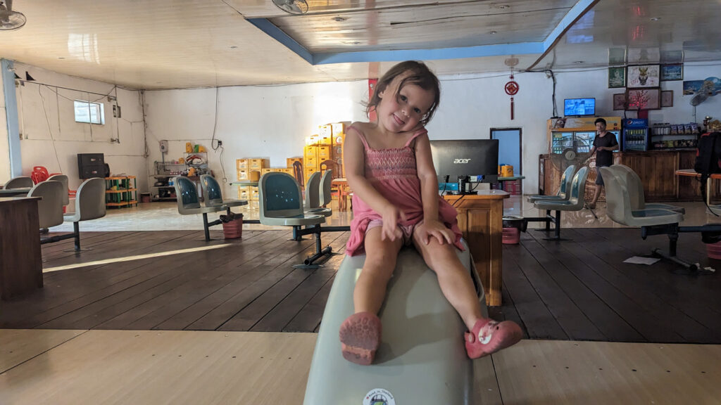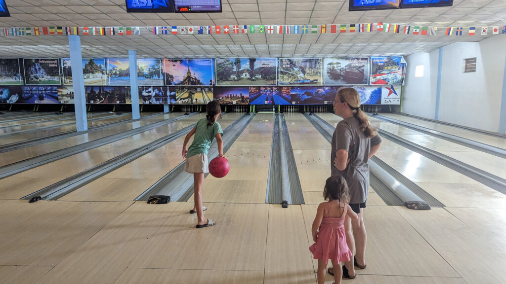 יצאנו מבית הקפה ותפסנו טוקטוק אל האטרקציה להיום, לא מפלים, לא כפרים נידחים, לא שייט בסירה, סתם נסענו לנו למתחם באולינג שבפאתי העיר, המקום נקרא: Luang Prabang Bowling Alley, רצינו להגיע לכאן בעקבות המלצות חוזרות ונשנות בקבוצות הוואטסאפ והפייסבוק על המקום.